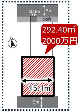- 南側公道幅員6mに15.1m